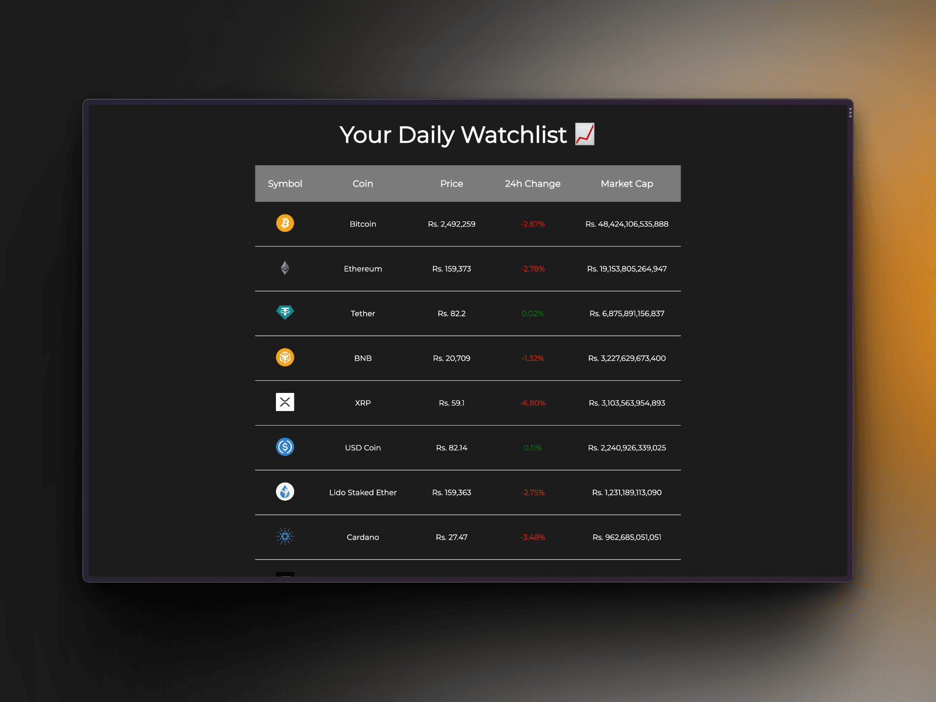 Check out here 👉🏻 cryptowatchlist.raihankhan.dev